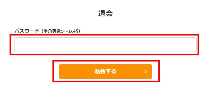 パスワードを入力して下さい。退会のご意思に間違いがなければ「退会する」ボタンを押して下さい。